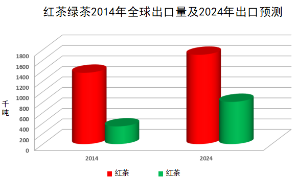 2014-2024年世界茶叶生产国消费量的强劲增长并不能抵消茶叶传统进口国消费量的减少;世界红茶和绿茶出口量将分别以每年2.4%和8.9%的速度增长,至2024年分别达到170.23万吨和80.43万吨。