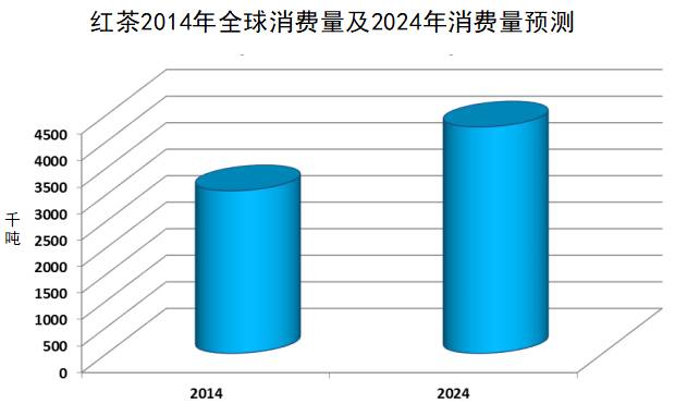 世界红茶产量年增长率预计为 3.7%,到 2024 年年产量达到 429 万吨,主要增长来自印度、 中国、 肯尼亚和斯里兰卡。中国的红茶产量有望超过肯尼亚这个最大的红茶出口国。主要原因是中国国内市场对红茶的需求。