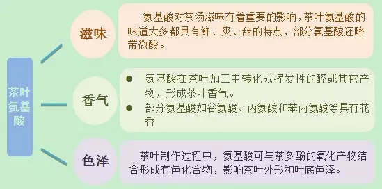 茶叶制作过程中,氨基酸可与茶多酚的氧化产物结合形成有色化合物,影响茶叶外形和叶底色泽。