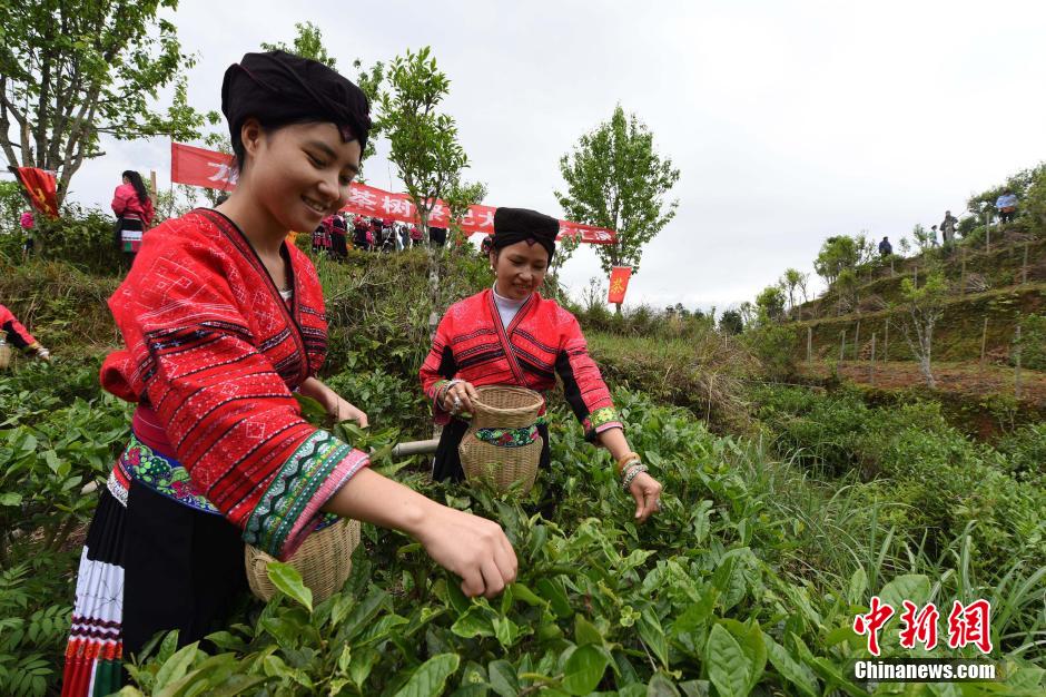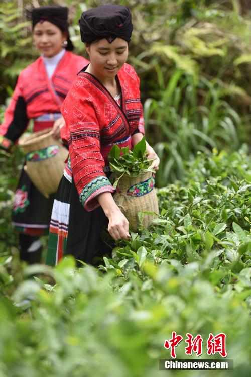4月20日,在广西龙胜各族自治县龙脊镇中禄村,当地的瑶族群众在生态茶园采摘“谷雨茶”。当日是农历“谷雨”节气,广西龙胜各族自治县龙脊镇中禄村的瑶族群众上山赶采“谷雨茶”。“谷雨茶”是谷雨时节采摘的春茶,又叫二春茶,茶叶色泽翠绿,富含多种维生素和氨基酸,用其泡出来的茶滋味鲜活、香气怡人。