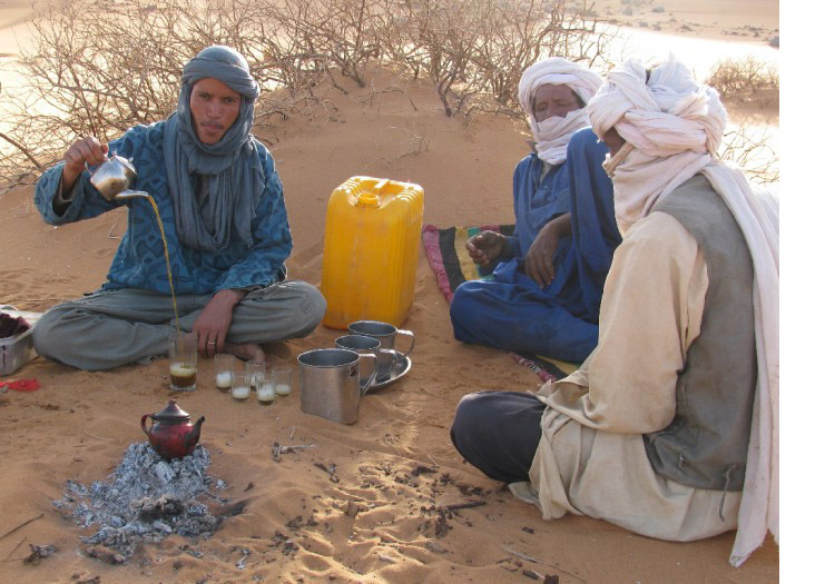马里人喜爱饭后喝茶。他们把茶叶和水放入茶壶里,然后炖在泥炉上煮开。茶煮沸后加上糖,每人斟一杯。他们的煮茶方法不同一般:每天起床,就以锡罐烧水,投入茶叶;任其煎煮,直到同时煮的腌肉烧熟,再同时吃肉喝茶。
