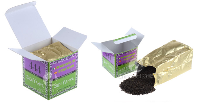 内盒: 500g/盒, 灰底白板对裱, 四色印刷。
