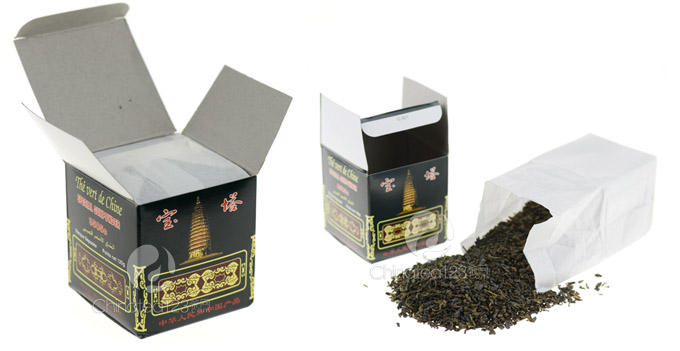 内盒: 250g/盒, 灰底白板, 四色印刷,上光。