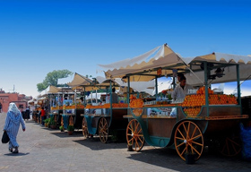 马拉喀什是摩四大皇城之一,同时也是摩重要的商贸中心和旅游城市。“马拉喀什”一词源于摩柏柏尔语,意思是“上帝的属地”。